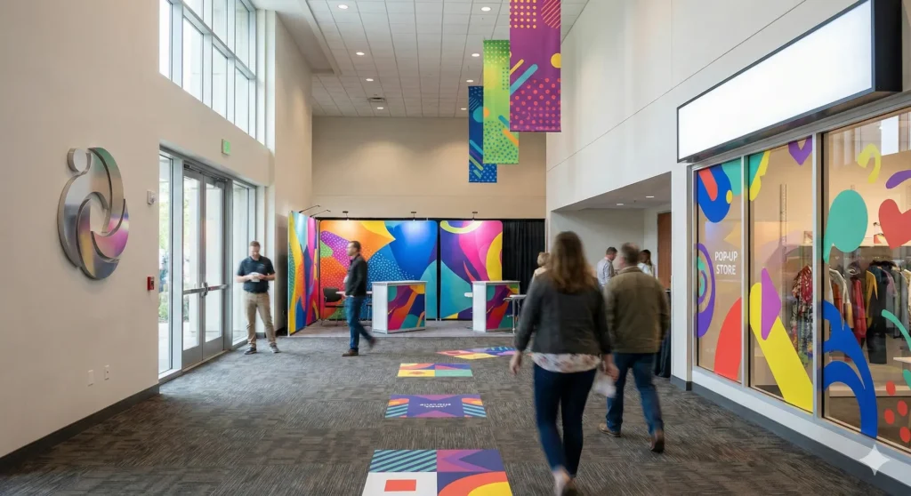 • Eventos temporales: Banderolas, vinilos promocionales y gráficos para eventos especiales.